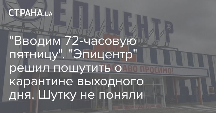 Сеть гипермаркетов "Эпицентр", которая исходя из постановления Кабмина, должна закрыться на выходные (будет разрешена работа только тех магазинов, в которых более 60% ассортимента составляют продукты питания), решила, видимо, отшутиться по этому поводу в соцсетях.