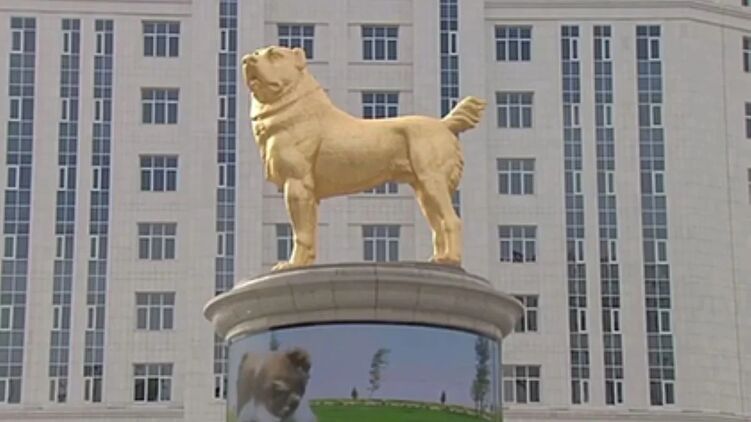 Президент Туркменистана Гурбангулы Бердымухамедов открыл в Ашхабаде золотой 15-метровый памятник собаке породы алабай.