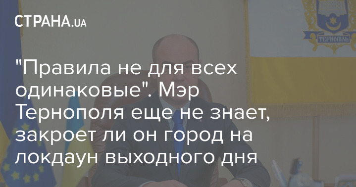Мэр Тернополя Сергей Надал назвал принцип действия карантина выходного дня несправедливым и избирательным. По его словам, ситуация с локдауном в Украине неоднозначная и сейчас в мэрии проходят консультации с врачами, вирусологами и предпринимателями.