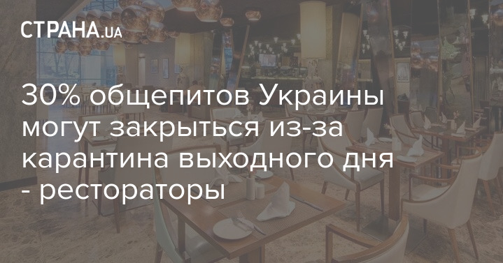 20-30% ресторанов могут прекратить свое существование в связи с введением в Украине карантина выходного. Такой прогноз сделала директор компании "Ресторанный консалтинг" Ольга Насонова, передают "Украинские новости".