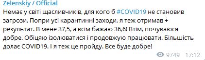 9 ноября Владимир Зеленский сообщил, что заразился Covid-19. Президент написал, что у него температура 37,5, но он изолируется и продолжит работать.