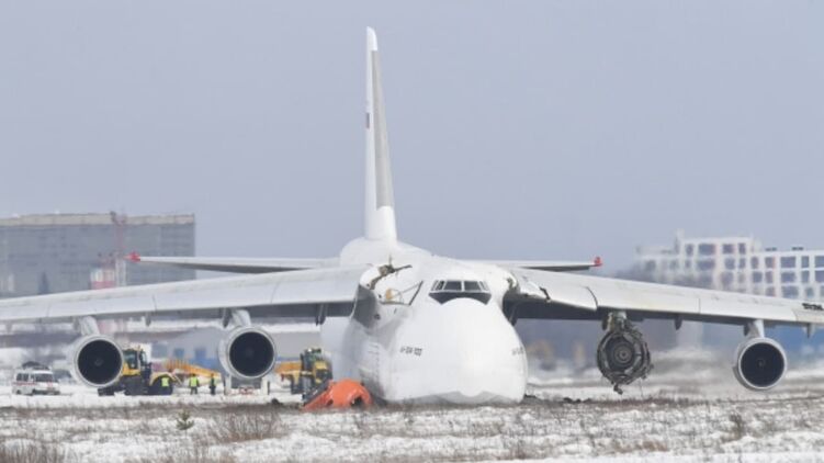 Появились первые фото с места аварийной посадки Ан-124, который начал рассыпаться в воздухе