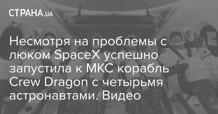Несмотря на проблемы с люком SpaceX успешно запустила к МКС корабль Crew Dragon с четырьмя астронавтами. Видео