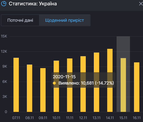 | 15 ноября | 10 681 | 95 | 36 000 (29,6%) |