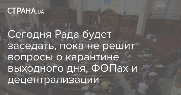 Сегодня Рада будет заседать, пока не решит вопросы о карантине выходного дня, ФОПах и децентрализации