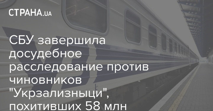 СБУ завершила досудебное расследование против чиновников "Укрзализныци", похитивших 58 млн гривен