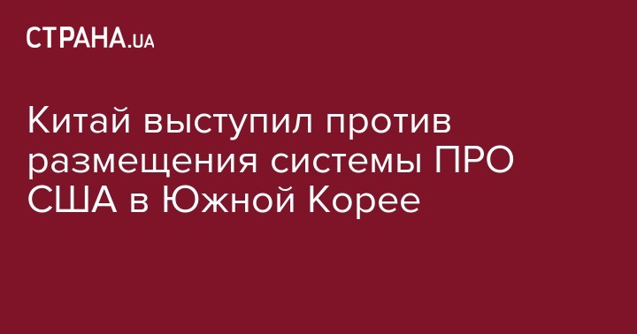 Китай выступил против размещения системы ПРО США в Южной Корее