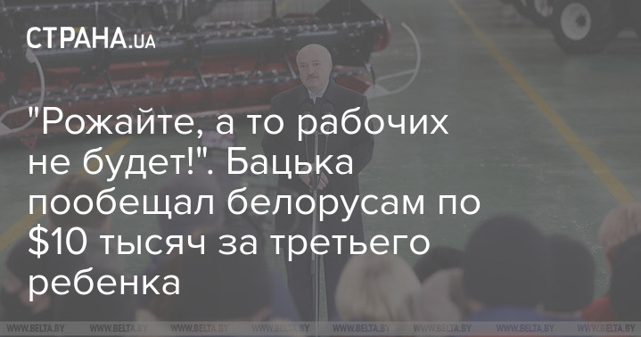 "Уверен, что программа данная останется навсегда. Но вы только рожайте, ради Бога. Мы будет стараться находить по 10 тысяч долларов на каждого ребеночка после рождения двоих детей. Это же главное. Если детей не будет, то не будет и рабочих. И уже никакое образование не нужно", - добавил Лукашенко.