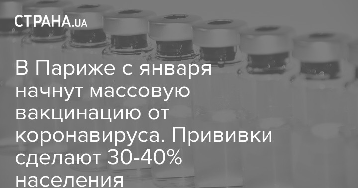 Мэрия Парижа планирует с начала января приступить к вакцинации от коронавируса от 30 до 40% жителей города.