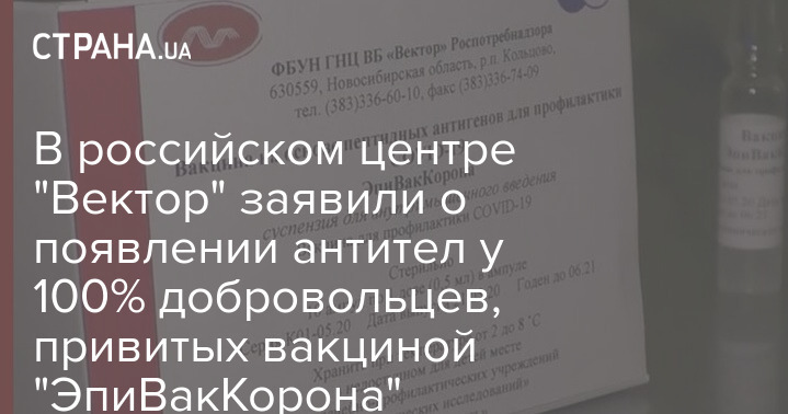 "Клинические исследования показали, что антитела были выявлены у 100% добровольцев, иммунизированных вакциной "ЭпиВакКорона". Относительно клеточного иммунного ответа уже отмечено, после вакцинации у большей части добровольцев, привитых вакциной "ЭпиВакКорона", наблюдалась индукция выраженного специфического Т-клеточного иммунного ответа", - сказали в центре "Вектор".
