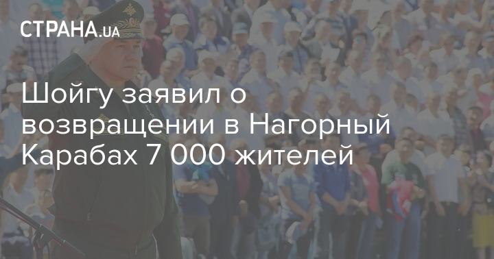 Министр обороны России Сергей Шойгу во время встречи с армянским коллегой Вагаршаком Арутюняном заявил, что в Нагорный Карабах уже вернулось около 7 000 беженцев.