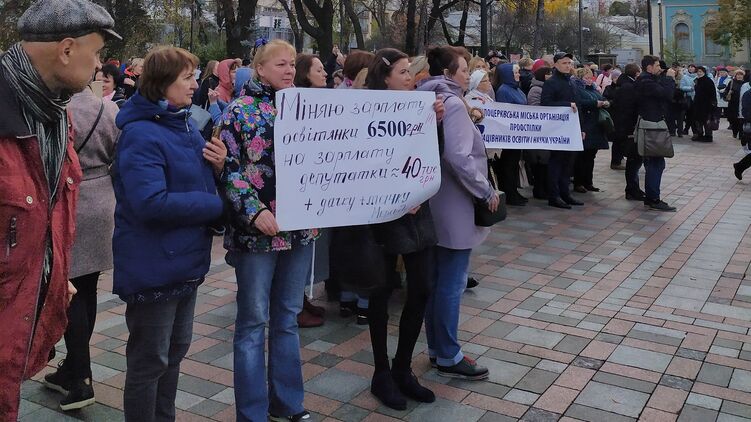 В прошлом году учителя уже митинговали под Радой, требуя повышения зарплат. Но власти так и не сдержали своих обещаний. Фото из открытых источников