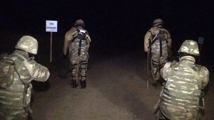 И министерство обороны Азербайджана уже показало в соцсети первые кадры из этого района, взятого ночью под полный контроль. На кадрах, снятых в темное время суток, видно как саперы под прикрытием автоматчиков приступили к разминированию территории.
