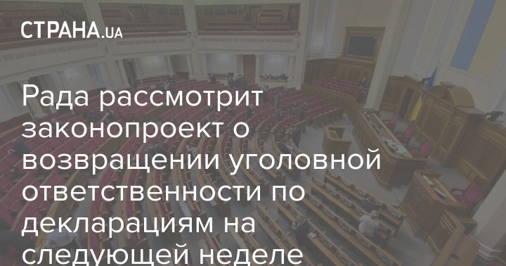 Рада рассмотрит законопроект о возвращении уголовной ответственности по декларациям на следующей неделе