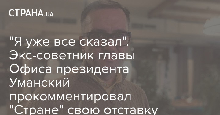 "Я уже все сказал". Экс-советник главы Офиса президента Уманский прокомментировал "Стране" свою отставку