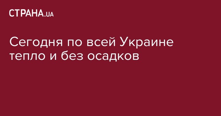 Во вторник, 6 сентября, на всей территории Украины установится сухая погода, воздух прогреется до +26...+30 в зависимости от региона. Об этом говорит прогноз Укргидрометцентра.