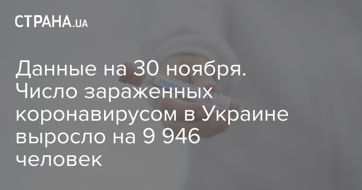 По состоянию на утро понедельника, 30 ноября, в Украине подтвердилось 9 946 новых случаев заражения коронавирусом.