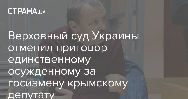 Верховный суд Украины отменил приговор бывшему крымскому депутату Василию Ганышу, который ранее был осужден за государственную измену и приговорен к 12 годам лишения свободы.