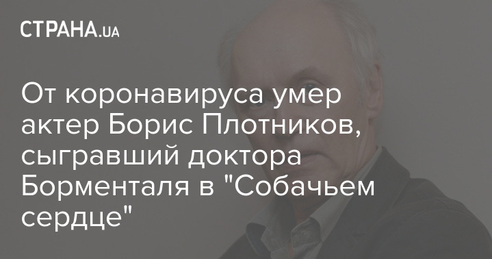От коронавируса умер актер Борис Плотников, сыгравший доктора Борменталя в "Собачьем сердце"