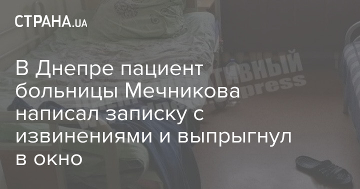 В Днепре пациент больницы Мечникова написал записку с извинениями и выпрыгнул в окно
