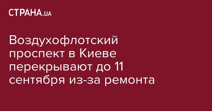 "С 21:00 9 сентября до 06:00 11 сентября на Воздухофлотском проспекте будет ограничено движение автотранспорта. Транспортное движение ограничат в связи с ремонтом дорожного покрытия путепровода на пересечении проспекта Воздухофлотского с проспектом Победы и путепроводом через реку Лыбедь", - говорится в сообщении.