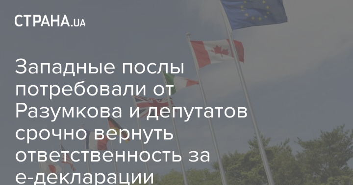 Западные послы потребовали от Разумкова и депутатов срочно вернуть ответственность за е-декларации