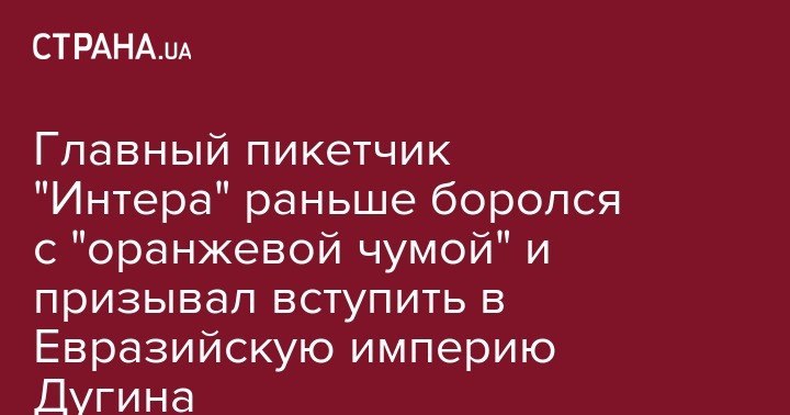 Народный депутат от фракции "Народный фронт" Олег Медуница сообщил, что всего несколько лет назад один из главных пикетчиков телеканала "Интер" Алексей Середюк активно принимал участие в евразийских собраниях российского идеолога Александра Дугина, скандировал, что "за нами Москва" и призывал уничтожить "оранжевую чуму". Об этом нардеп написал в Facebook со ссылками на ресурсы, где засветился Середюк.
