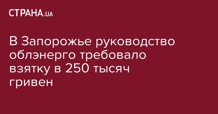 В Запорожье руководство облэнерго требовало взятку в 250 тысяч гривен