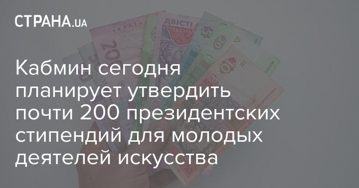 На заседании в среду, 9 декабря, Кабинет министров планирует утвердить проект указа президента Украины о назначении стипендии для молодых писателей и деятелей в сфере музыкального, театрального, изобразительного, хореографического, эстрадно-циркового искусства и киноискусства.