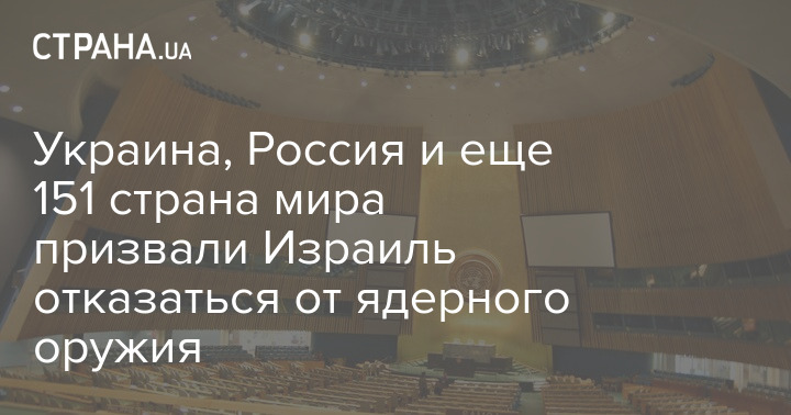 Генеральная Ассамблея ООН призвала Израиль отказаться от обладания ядерным оружием - не разрабатывать, не производить, не испытывать и не приобретать его. Резолюцию с призывом 7 декабря поддержали 153 государства - члена ООН при 25 воздержавшихся.