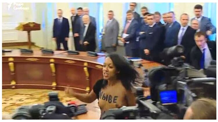 Представительница Femen Анжелина Диаш де Кинташ поясняла, что смысл акции был в попытке привлечь внимание к вопросам защиты прав женщин и обогащению Порошенко.