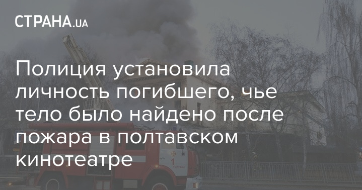 Полтавским правоохранителям удалось установить личность мужчины, чье тело было найдено после пожара в кинотеатре "Котляревского" в Полтаве. Им оказался молодой местный житель.