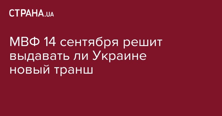 Международный валютный фонд 14 сентября рассмотрит вопрос о выделении нового транша для Украины. Об этом передает Укринформ.