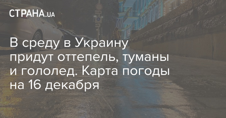 В среду, 16 декабря, в Украине погода будет продиктована влиянием антициклона Yadigar, поэтому снега и ледяных дождей не ожидается. Однако возможны туманы и гололедица.