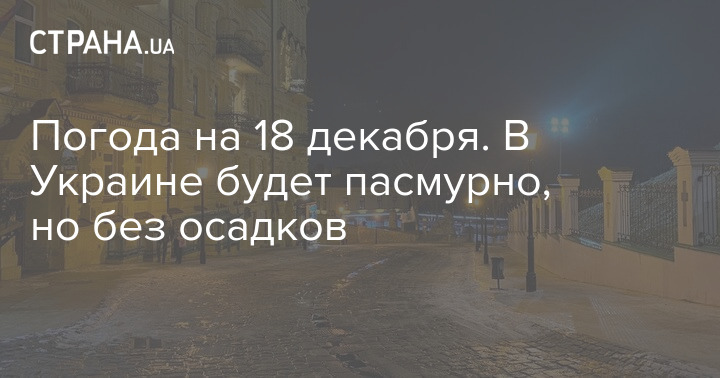 Сегодня, 18 декабря,  в Украине ожидается пасмурная погода без существенных осадков. На северо-востоке страны на дорогах местами гололедица. Утром в западных, северных и центральных областях туман. Ветер слабый.