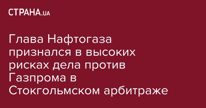 Глава Нафтогаза признался в высоких рисках дела против Газпрома в Стокгольмском арбитраже