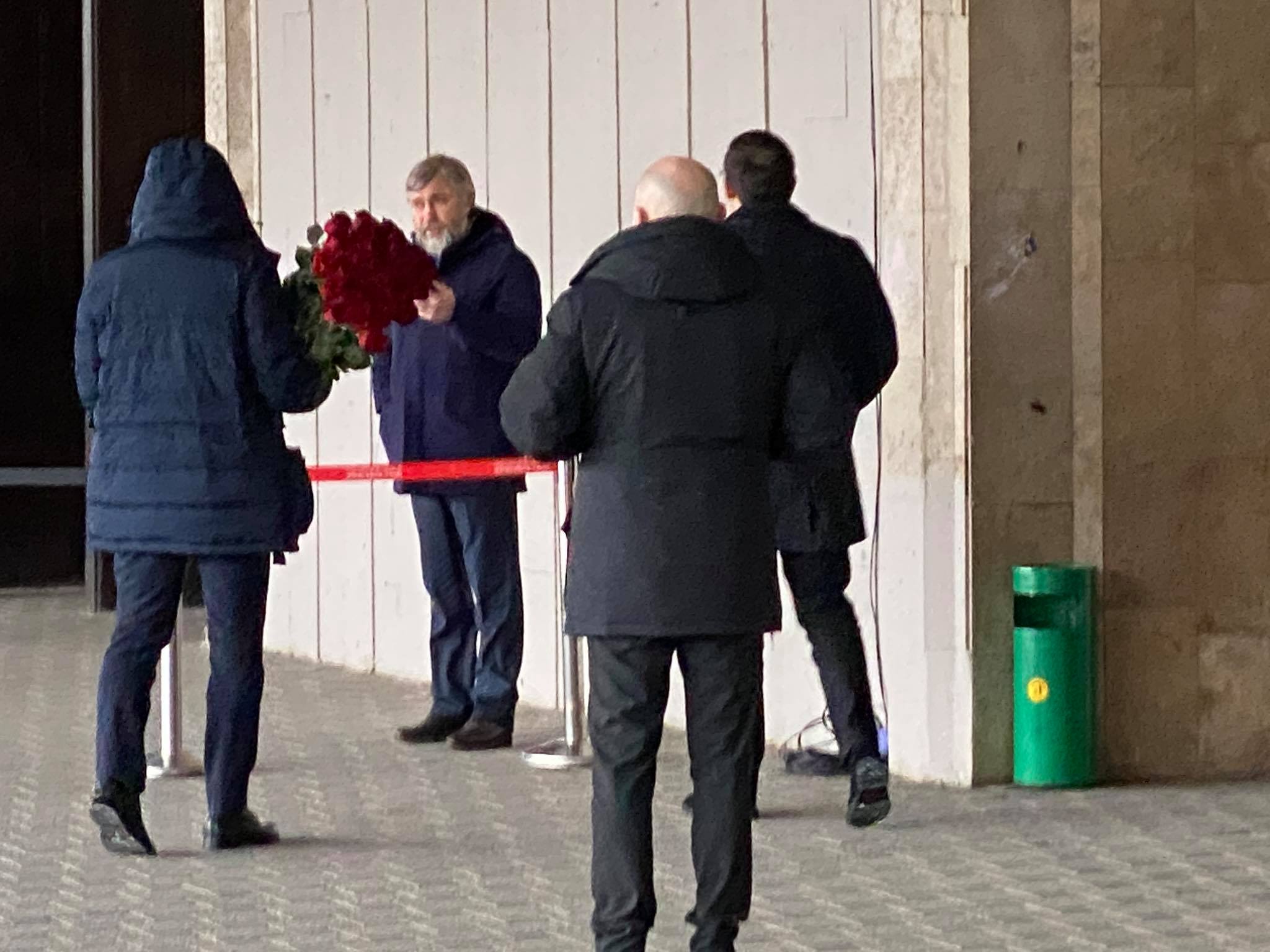 11:25 У театра, где прощаются с Кернесом, очереди. Харьковчане несут цветы.