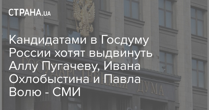 Кандидатами в Госдуму России хотят выдвинуть Аллу Пугачеву, Ивана Охлобыстина и Павла Волю - СМИ