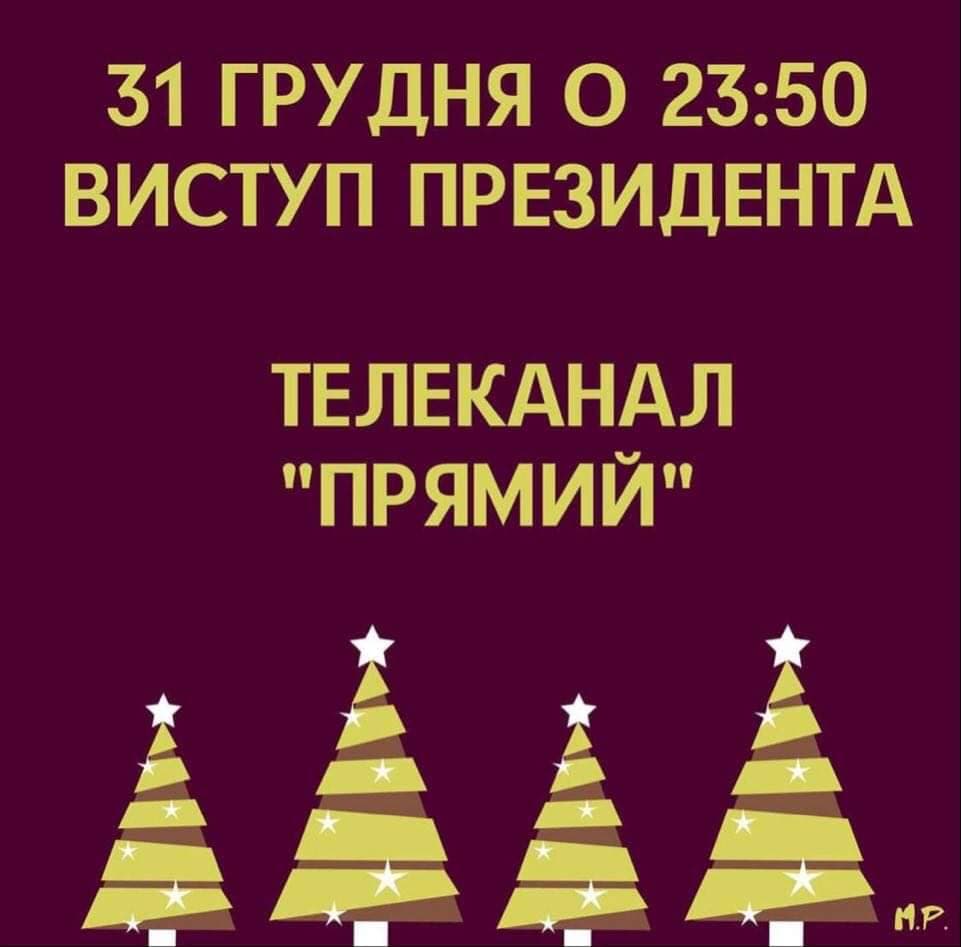 На телеканале "Прямой" анонсировали в ночь на 1 января выступление президента, не указав фамилию. Судя по опыту прошлого года, это будет бывший президент Украины Петр Порошенко, которому, по информации СМИ, канал и принадлежит.
