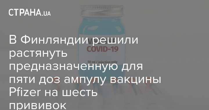 Финский Институт здравоохранения и социального благополучия (THL) при министерстве здравоохранения и социального благополучия внес изменения в инструкцию по дозировке вакцины от коронавируса производства Pfizer и Biontech. Орган решил, что каждую ампулу, рассчитанную на пять доз, можно растягивать на шесть уколов.