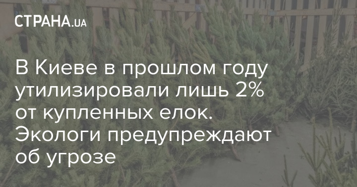 Председатель Всеукраинской экологической лиги Татьяна Тимочко заявила, что в Киеве в прошлом году утилизировали только малую часть новогодних деревьев. Киевляне купили около 500 тысяч елок, а переработано только 2% от этого количества.