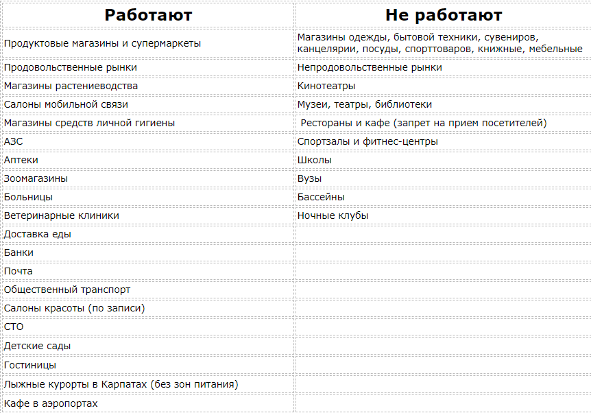 Что же касается торговых центров, то киевская мэрия выпустила разъяснение, что там будут работать лишь указанные выше в перечне магазины - да и то, если у них будет отдельный вход. Правда, не уточняется, с улицы или нет. Так что в теории, сами ТРЦ могут быть открыты. А вот магазины в них - далеко не все.