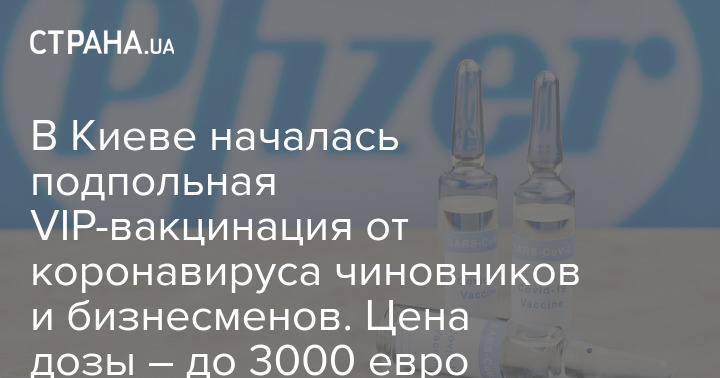 По информации источников "Страны", представителям украинской элиты – политикам и богатым бизнесменам – начали предлагать подпольную услугу по вакцинации препаратом BioNTech и Pfizer неделю назад. Но удовольствие это не из дешевых. Стоимость нелегальной прививки от коронавируса составляет от 1 до 3 тысяч евро.