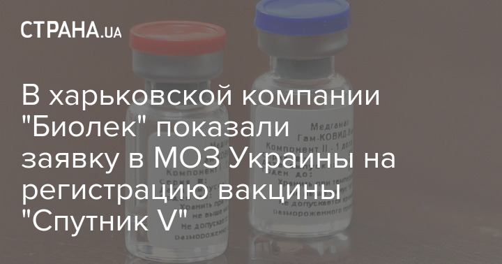 "В связи с многочисленными запросами администрация АО "Биолек" сообщает, что 31.12.2020 г. в адрес МЗ Украины нами действительно была отправлена заявка о государственной регистрации лекарственного средства - вакцины "Гам-КОВИД-Вак" (торговая марка "Спутника V" - Ред.), комбинированной векторной вакцины для профилактики короновирусной инфекции, вызванной вирусом SARS-CoV-2, производства ФГБУ "НИЦЕМ им. М.Ф. Гамалеи", МЗ РФ", - говорится на сайте.