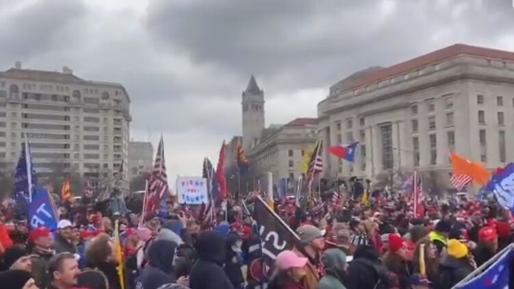 Сотни демонстрантов собрались в Вашингтоне чтобы поддержать Трампа. Скриншот из видео