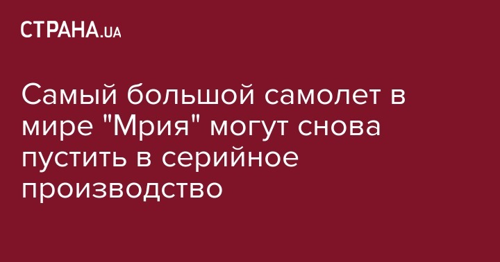 Самый большой самолет в мире "Мрия" имеет все шансы получить второе рождение, в настоящее время рассматривается вопрос о запуске воздушного транспортного средства в серийное производство. Об этом в интервью в эфире радиостанции "Вести" рассказал заместитель начальника отделения перспективных разработок ГП "Антонов" Андрей Хаустов.
