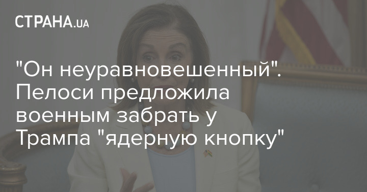Спикер палаты представителей США Нэнси Пелоси, недавно требовавшая немедленно отстранить от власти Дональда Трампа, хочет ограничить его полномочия. Она сообщила, что обсудила с главой Объединенного комитета начальников штабов Вооруженных сил генералом Марком Милли ограничение для Трампа возможности отдавать распоряжения о нанесении ядерного удара или начале военных действий.