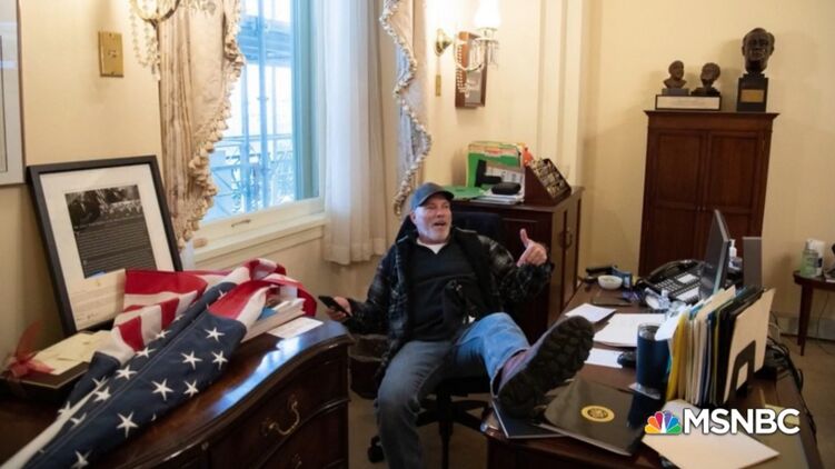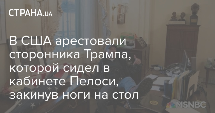 Американская полиция задержала мужчину, который во время беспорядков в Капитолии пробрался в кабинет спикера Палаты представителей Конгресса Нэнси Пелоси и уселся в ее кресло, положив ноги на рабочий стол политика.