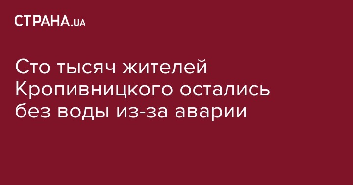 В ночь на 11 сентября в Кропивницком произошла авария на подземном магистральном водопроводе холодной воды, в результате почти 100 тысяч жителей остались без воды. Об этом сообщает ГосЧС.