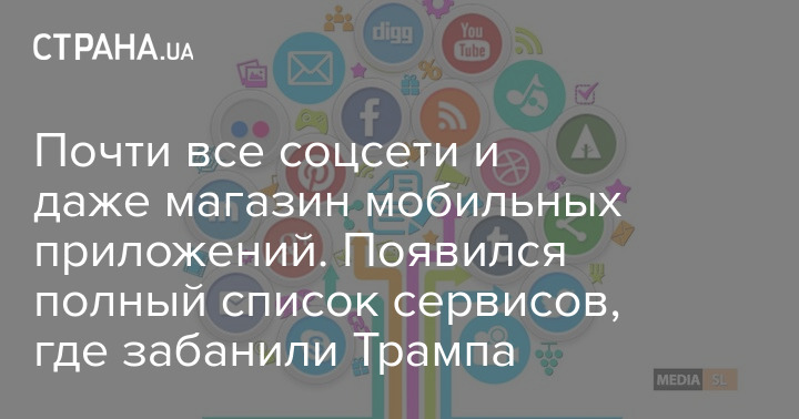 Почти все соцсети и даже магазин мобильных приложений. Появился полный список сервисов, где забанили Трампа
